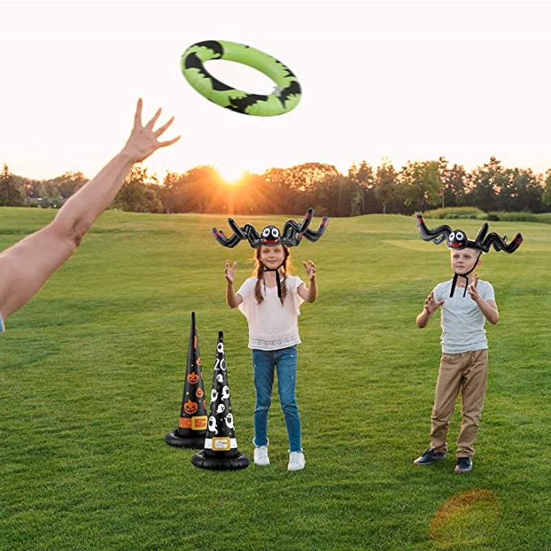 - The inflatable toss toy package include: 1 x Inflatable Spider Hat, 8 x Toss Rings(Random Color)